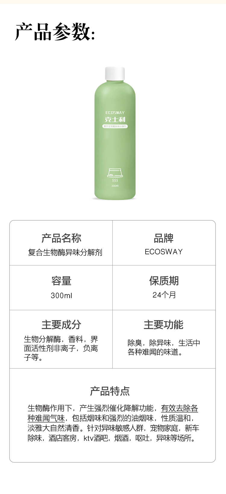 魁山科技ecosway生物酶衣物新房老人房去異味除臭噴霧劑