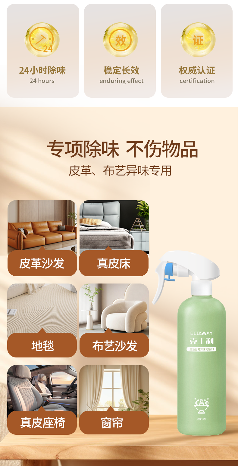魁山科技ecosway全能除味劑裝修異味新車除味劑