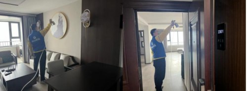 施工第1道:完全分解空氣中游離態污染物,采用方法:全空間霧化技術(空調新風窗戶需關閉)。